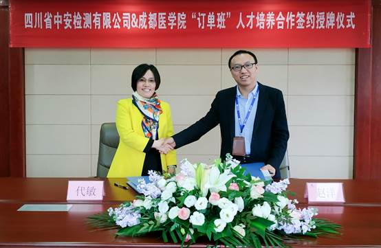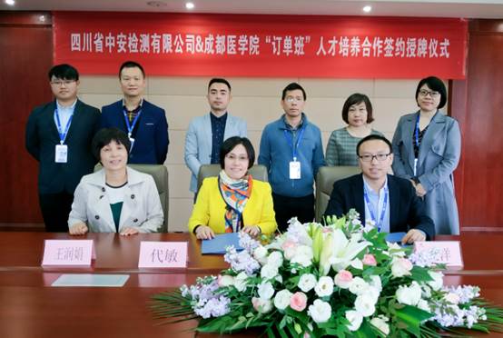 成都医学院检验医学院与四川省中安检测有限公司,就食品专业学生“订单式”培养约定如下:四川省中安检测有限公司每年从检验医学院食品专业学生中选拔一定数量学生组建订单班,在不影响学生在校正常课业学习要求的情况下,安排学生于周末和假期参与公司的人才培训计划和社会工作实践,学生毕业后自愿决定是否留在公司就业。此外,中安检测公司为我院食品专业学生设定奖学金,根据学生参与实际工作情况给予劳动报酬,定期安排专家到校为学生讲授食品法规、食品工业与检测发展现状等内容的课程,并为我院食品专业学生的创新创业活动提供指导。