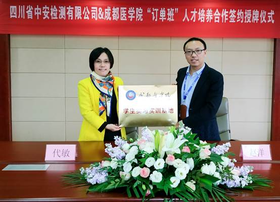 过程中,检验医学院院长代敏对四川省中安检测有限公司成为我院学生实习实训基地进行了授牌。同时,双方在校企科研合作、校企社会纵向项目合作、校企社会资源平台共享等方面进行了深度探讨。