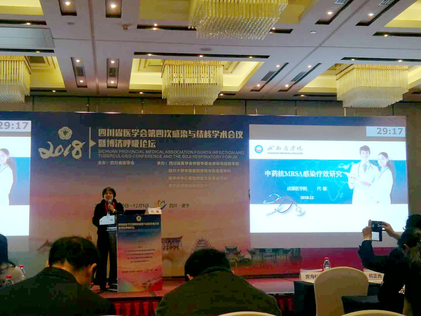 受组委会邀请,代敏教授做了大会主题报告“中药抗MRSA感染疗效研究”,主要内容包括MRSA耐药现状、MRSA感染及其控制新进展等,并重点报告了代敏教授团队近年来中药抗MRSA感染的相关研究成果,与会专家围绕相关问题进行了热烈讨论。此外,大会还邀请了中国人民解放军301医院呼吸科主任佘丹阳教授、四川大学华西医院呼吸科主任范红教授、南京军区总医院呼吸科主任施毅教授、中华结核与呼吸杂志编辑部主任李文慧等国内知名感染性疾病专家做了学术报告。