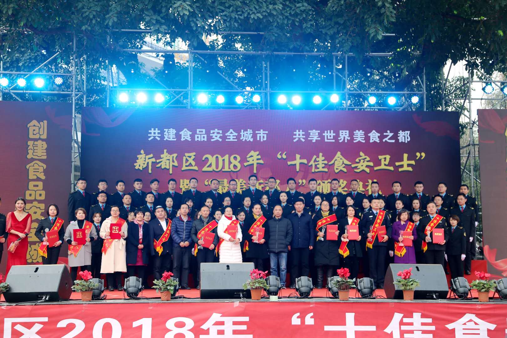 12月26日上午十点,新都区黄角树广场隆重举行新都区2018“十佳食安卫士”暨“最美新都人”颁奖典礼。由新都区食品药品安全委员会主办;新都区委宣传部、新都区总工会、新都区市场质量监督管理局承办;历经两个月的筹备和层层筛选,最终推出十位长期工作在食品监管一线和积极推动食品安全,为共建食品安全城市作出贡献的各行各业人士,授予2018“十佳食安卫士”。