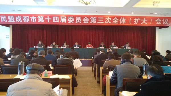 018年1月11日-13日,民盟成都市委召开第十四届第三次全体(扩大)会议,主委刘旭光,副主委杨春禧、苏蓉、吴皓、朱建华、高增安、梅健、蔡光洁,秘书长何立新出席会议。盟市委委员、基层组织负责人共83人参会。盟省委副主委、民盟雅安市委会主委彭学松应邀参会。我校民盟支部副主委程曦副教授参会。