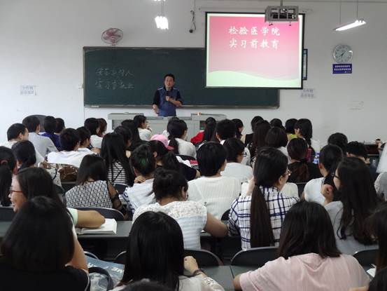 为促进学生了解实习工作,安全高质量地完成实习计划及就业,5月20日晚,检验医学院党委副书记郑崛村在教学楼B-301教室举行了2012级医学检验本科实习生的实习前教育讲座。