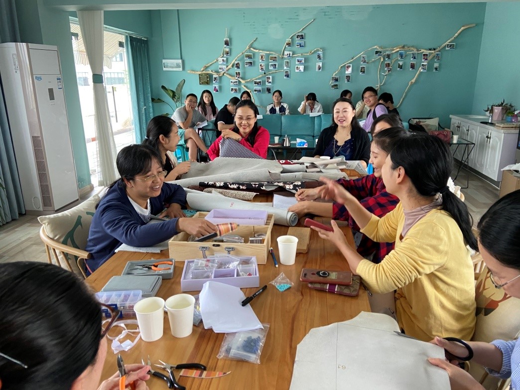 参会教师对这种解压方式热情高涨,积极参与其中,大家相互协作,认真制作,做出各种精美的手工制品。参会教师纷纷表示:以制作手工方式真正让她们实现了劳逸结合,不仅很好的舒缓了教职工平时的工作压力,而且更好地保障工作质量和效率。
