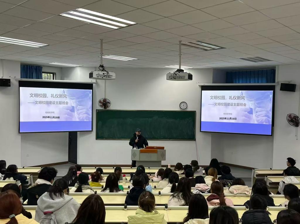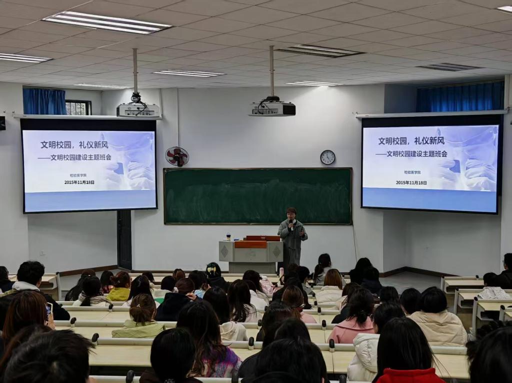 11月18日中午,学院2024级医学检验技术在教学楼A109召开“文明校园,礼仪新风”主题班会。会议由辅导员乔静主持,全年级同学参与,学生科科长夏焱莅临指导。