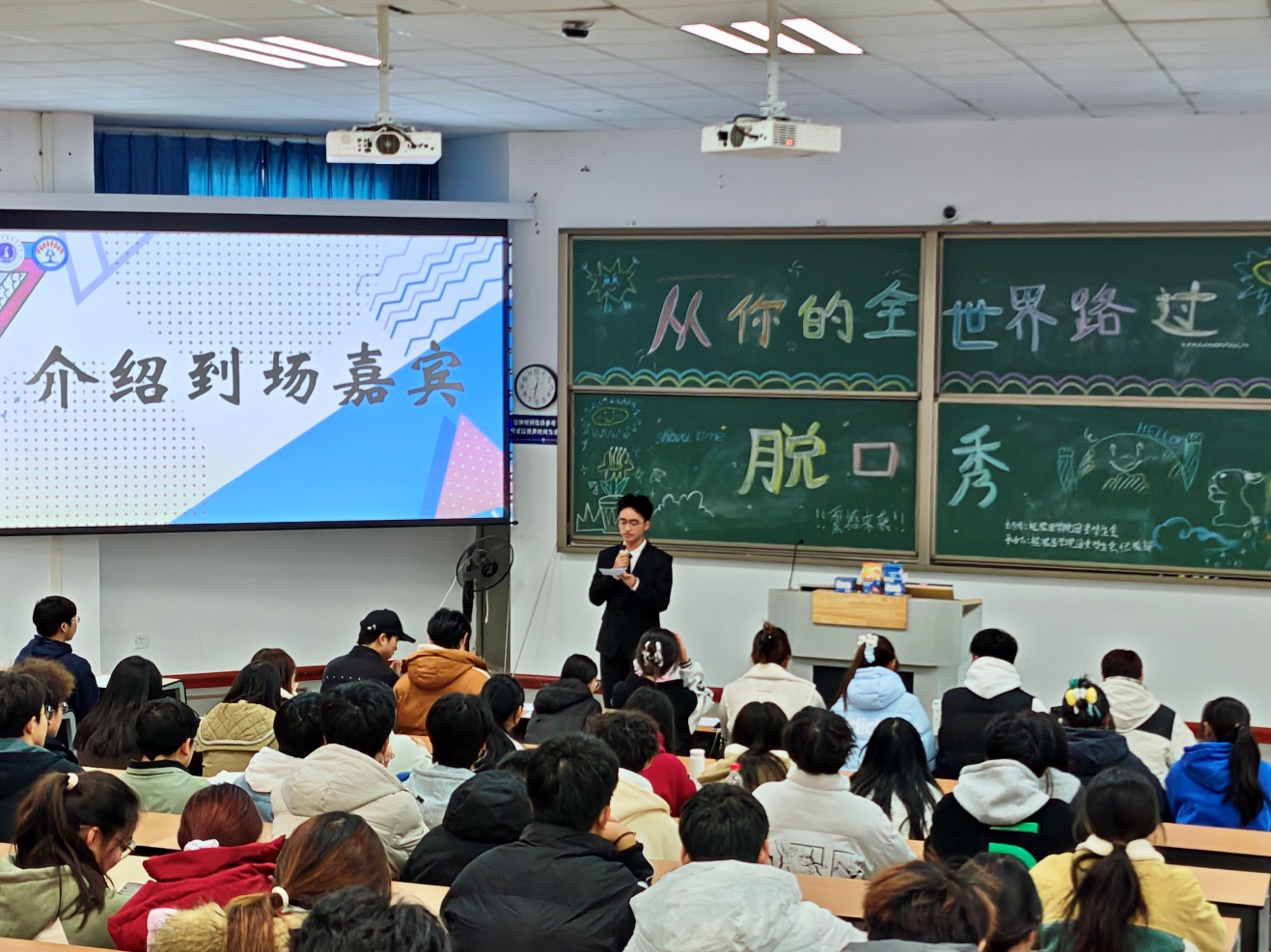 为了在欢笑中重温青春里的遗憾与温暖,在脱口秀的幽默表达中找到属于自己的情感共鸣。11月24日,检验医学院心理工作站在博学楼B108举办了“从你的全世界路过”脱口秀活动。
