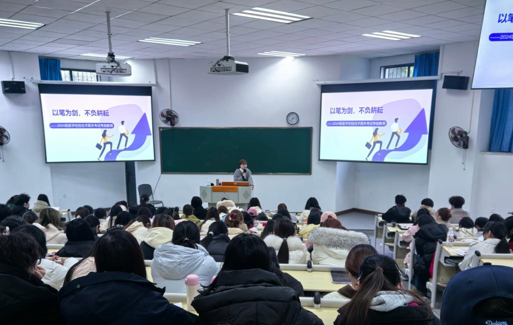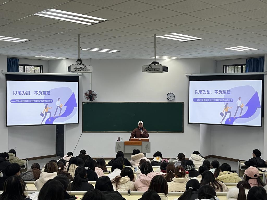 2024级医学检验技术专业于12月23日在博学楼A209开展了主题班会,旨在调动学生的备考积极性,助力其在考试中取得理想的成绩。
