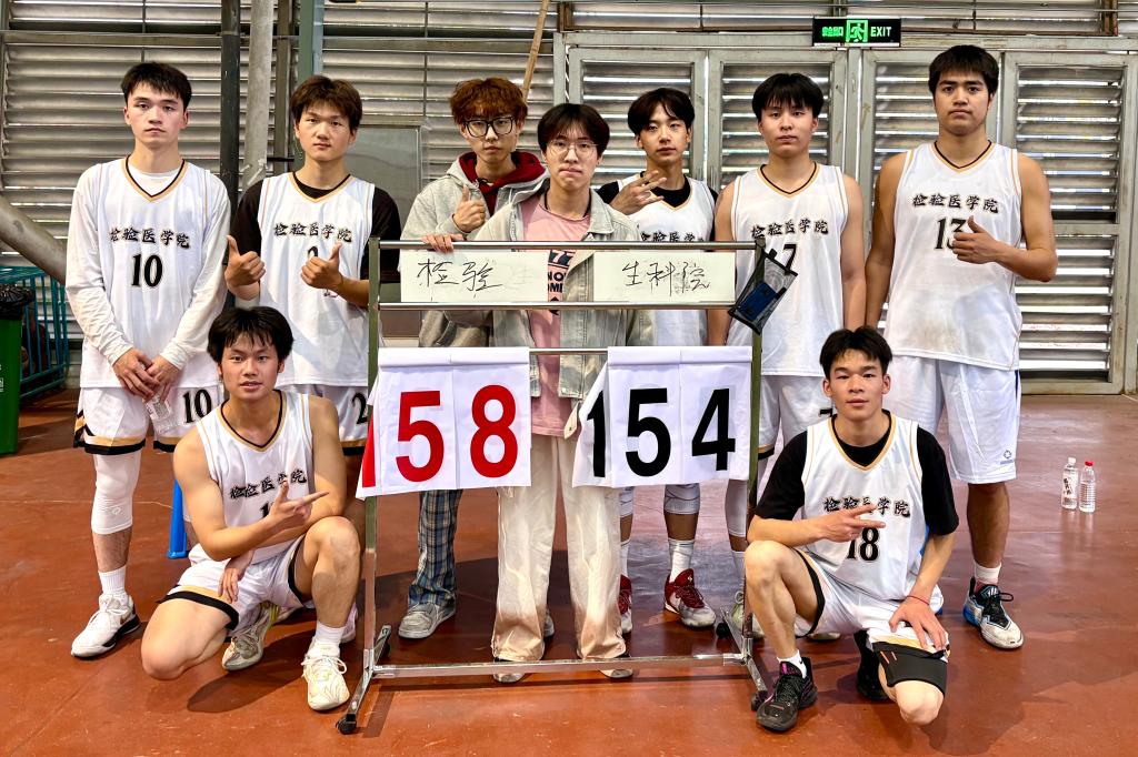 本场比赛由检验医学院和生科院的两支队伍同台竞技,赛事全程激烈胶着。裁判员哨声响起,赛事正式拉开帷幕。检验医学院队迅速进入状态,率先抢占得分优势。生科学院队沉着应对,及时调整战术,66号、24号球员精准出手,逐步缩小分差,赛场气氛迅速升温。检验医学院队齐心协力,通过默契传球、精准投篮不断得分;生科院队顽强追赶,双方实力不相上下。在场边观众的欢呼声与呐喊声中,上半场比赛结束,检验医学院以18:15的微弱优势暂时领先。下半场对抗进入白热化阶段。生科院队率先发力,一记三分追平比分;检验医学院队也不甘示弱,13号球员发挥出色,三分球与罚球接连命中,逐步扩大领先优势。生科学院队24号球员全力追分,多次命中三分,奋力缩小差距。赛事尾声,双方依旧拼抢激烈,毫不松懈。终场哨声响起,检验医学院队以58:54的比分战胜生科院队,赢得本场比赛的胜利。