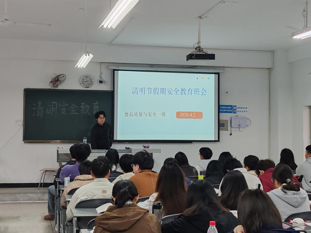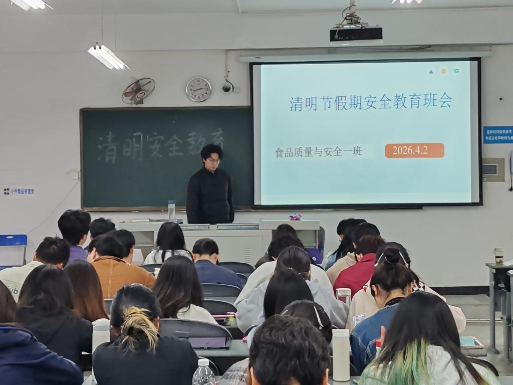 为切实做好清明节假期安全管理工作,增强全体同学的安全防范意识,确保大家度过一个平安、文明、健康的假期,2026年4月3日上午,2023级食品质量与安全一班于博学楼A212召开清明节放假安全教育主题班会。