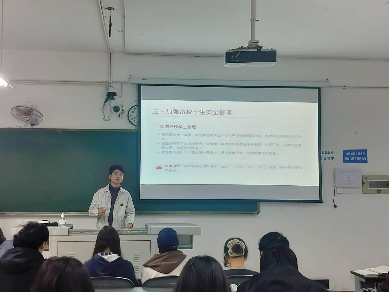 此次班会全面落实了学校假期学生工作要求,进一步强化了同学们的安全防范意识与责任担当,明确了假期各项安全管理规范,有效排查化解了潜在安全风险,为全体同学度过一个平安、文明、健康的清明节假期筑牢了坚实屏障,也为维护校园安全稳定奠定了良好基础。