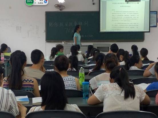 为纪念抗日战争胜利70周年和红军长征入川80周年,6月30日上午检验一队王青同学在A408和同学们一起交流了这个伟大的纪念日,并带动大家分享了自己的感悟和体会。