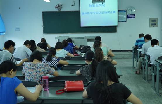 检验医学院在收到文件后立即进行策划,整个认证竞赛分为教师和学生两大阵营。此次竞赛为检验医学院临床专业认证知识竞赛系列活动的第一轮,以考试形式进行,设置了填空题、名词解释题以及简答题共三种题型,围绕临床医学专业认证的目标、原则、形式、过程、标准以及我校的办学宗旨、目标定位等方面进行。竞赛过程中大家沉着应对,积极答题,竞赛现场秩序井然。有部分老师由于工作原因未能参加此次竞赛,学院另安排了时间进行单独加试。