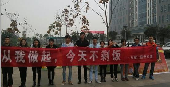 2014年11月14日,检验一队党支部在食堂开展“拒绝舌尖上的浪费,从我做起”主题活动,呼吁学生反对浪费,珍惜粮食,发扬中华民族的传统美德。