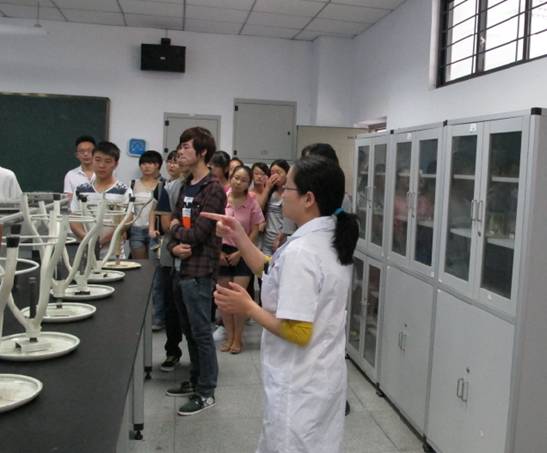 实验中心的吴民泸主任首先对同学们表示了热烈的欢迎了后,由实验中心的老师分批次带领同学们参观了实验中心的5个大型实验教学实验室,7个校验科研实验室及实验准备室,并详细介绍了这些实验室的使用情况及实验室中仪器的概况。参观过程中同学们对实验中心的仪器表现出了浓厚的兴趣。