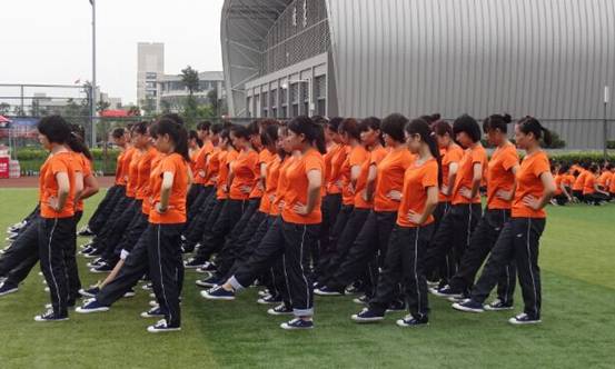 凉爽多云的天气为同学们的训练提供了不少便利,绿茵的青草与橘黄的服装交相辉印,让同学们显得活力十足。训练场上,教官们严格要求新生整理军容和端正军姿,不时亲自示范,并手把手纠正基本动作,让同学们深刻体会到成医“精益求精”的校训。同时,“一二一”这简短的音符也是随处可见,随时可闻。短短三天,同学们整齐的军姿,有力的正步似戈壁滩前的白杨般高大挺拔,响亮的口号,激昂的军歌如一泻千里的瀑布般气势磅礴。