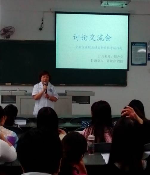 本次课程特别邀请了曾献春教授和同学们交流。曾献春老师不仅长期从事食品专业教学,并且是国家中级就业指导师,在就业指导方面亦有较丰富的经验,且有自己独到的见解。曾老师畅谈了自己对岗位证书的理解,分享了自身的人生经历,还着重引导同学们建立自我职业规划。课堂中,同学们踊跃发言参与交流讨论,课堂气氛热烈。课后同学们均表示获益良多,特别是对自己今后的就业方向又有了更进一步的认识。