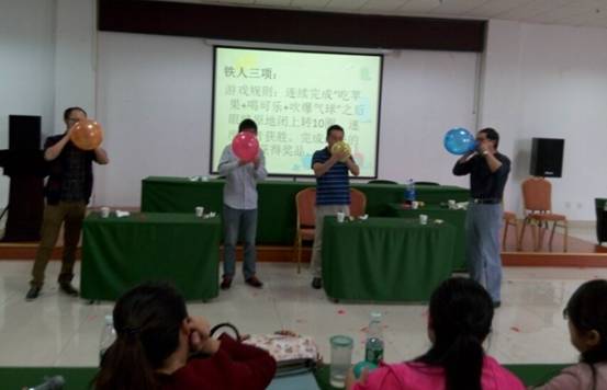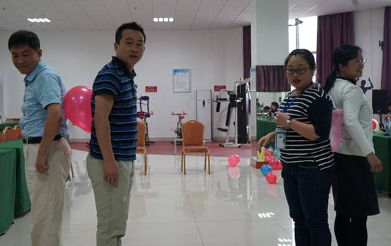 活动中安排了多个趣味比赛项目,背靠背夹气球、抢椅子、“铁人三项”游戏、“眉目传情”游戏、“心有灵犀”游戏等项目。现场热闹非凡,欢乐的笑声洋溢的活动现场,简单的游戏更加增添了无限的乐趣。在活动中,队员们充分发挥运动优势,有效协调,合理分工,齐心协力,努力拼搏,充分发挥团队精神。活动现场气氛热闹,教工热情高涨,加油声、喝彩声、笑声此起彼伏。